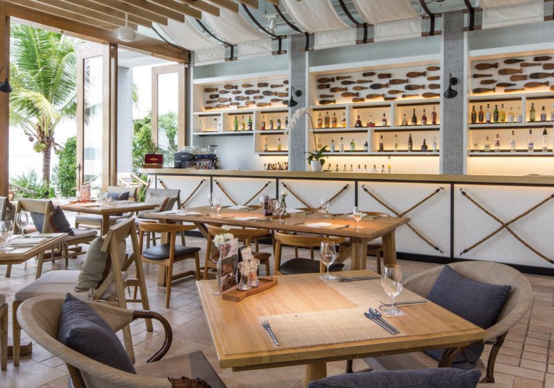 Ihr bewegt Euch entspannt zwischen Rezeption, Aufenthaltsraum und Bibliothek; Sonnenschirme, Liegen und Badetücher am Pool und Strand sind organisiert. Das À-la-carte- und das Buffetrestaurant servieren asiatische, landestypische und internationale Küche, beide mit Terrasse – praktisch für die Mittagspause oder ein spätes Abendessen. Strandbar und Poolbar setzen leichte Akzente zwischen Schwimmen und Spaziergängen am Wasser.