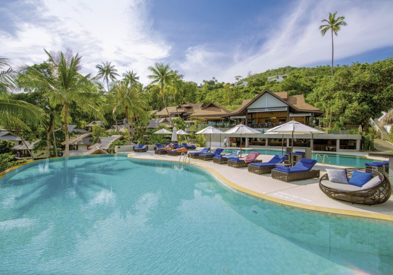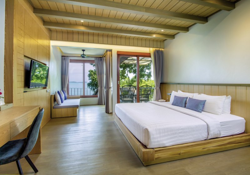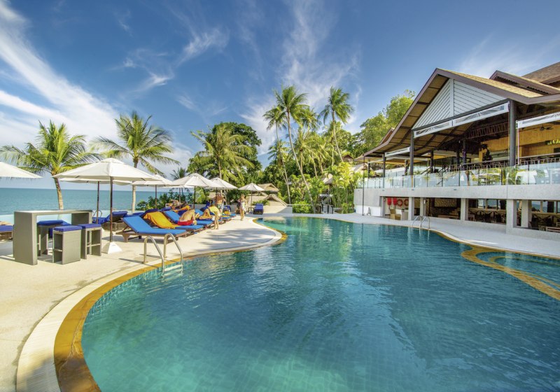 In der Lobby mit Rezeption kommt Ihr schnell an, danach locken Gartenwege, Sonnenterrasse und die offene Bar. Strandurlauber finden hier einen ruhigen Rhythmus zwischen Meer, Pool und Open-Air-Restaurant mit thailändischer und internationaler Küche. Familien profitieren vom Kinderpool, während Babysitterservice und Tour-Desk zusätzliche Planung erleichtern. Highlight: Direktlage in der Bucht mit kleinem Strand; Riff sorgt für maritimes Flair.