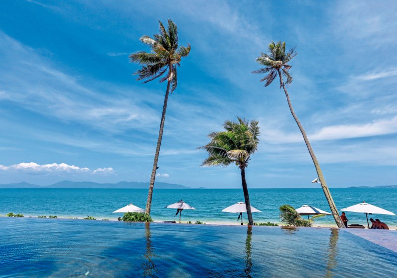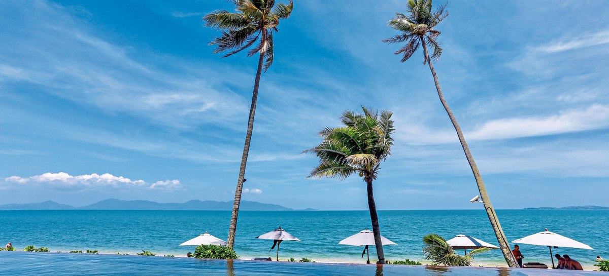 Ihr wohnt direkt am Maenam Beach auf Koh Samui. Der Flughafen Koh Samui liegt etwa 13 Kilometer entfernt, der lebhafte Chaweng Beach rund 12 Kilometer. So genießt Ihr eine ruhige Strandlage mit guter Anbindung an Inselpunkte für Ausflüge oder Abende außer Haus. Die Anlage öffnet sich zum Meer, während Gartenwege Euch zu Restaurant und Pool führen. Für Transfers steht ein Hotelbus gegen Gebühr bereit; zusätzlich hilft die klare Distanzlage bei der Planung Eurer Wege zwischen Strandzeit, Inselerkundung und Rückzug in die Villa.