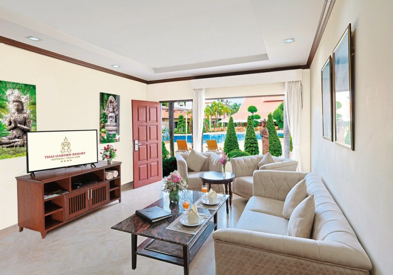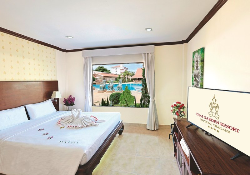 Thai Garden Resort verbindet eine gepflegte Anlage mit großem Pool, vielseitiger Küche und verlässlichem Service. Die Lage im Norden von Pattaya führt Euch schnell zum Strand, zu Restaurants und in die Stadt. Familien profitieren von Kinderprogramm, Kinderbecken und Betreuungsangeboten, während Paare und Kulturreisende die ruhigen Ecken im Garten schätzen.
