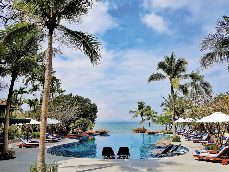 Die Architektur bleibt angenehm unaufgeregt und wurde 2021 zuletzt aufgefrischt. 60 Wohneinheiten schaffen eine maßvolle Größe, die Service und Ruhe begünstigt. WLAN in der gesamten Anlage, Bibliothek und Bars geben dem Tag Struktur, während Whirlpools und der Pool mit Liegen und Schirmen den Ton sanft dämpfen. Ihr bewegt Euch zwischen Restaurantterrasse, Lobbybar und Garten wie auf einem gut geölten Parcours, getragen von zugewandtem Service in Englisch und Thai. Wer Qualität ohne Lärm schätzt, fühlt sich hier sofort richtig.