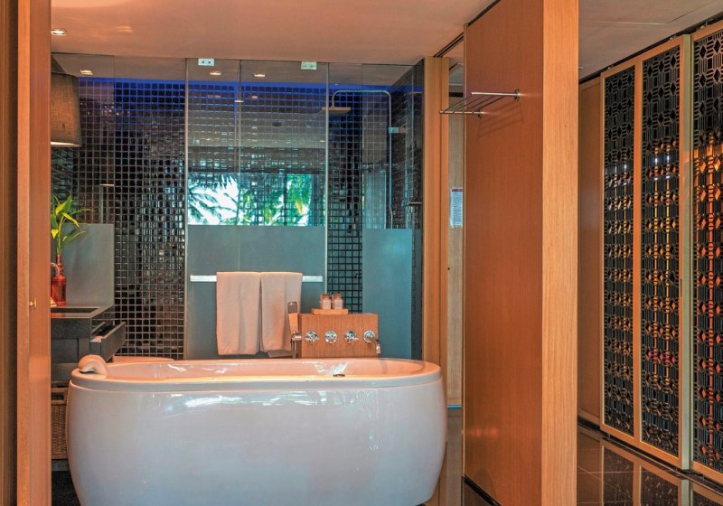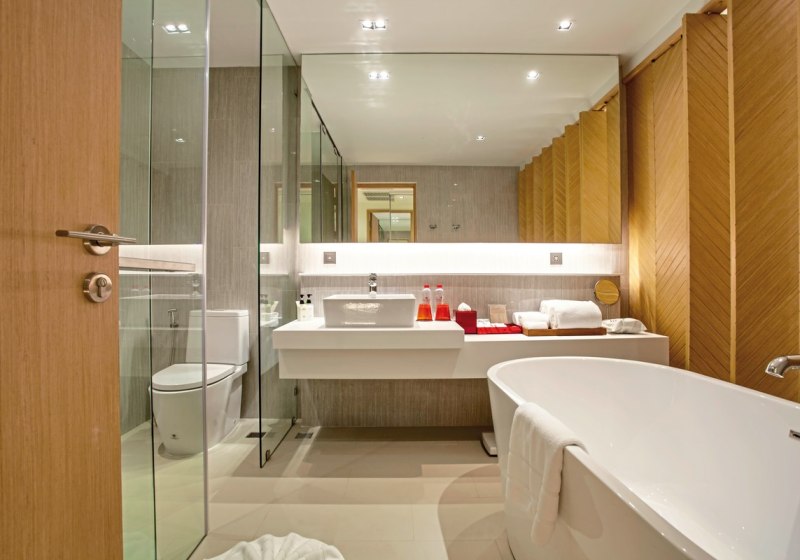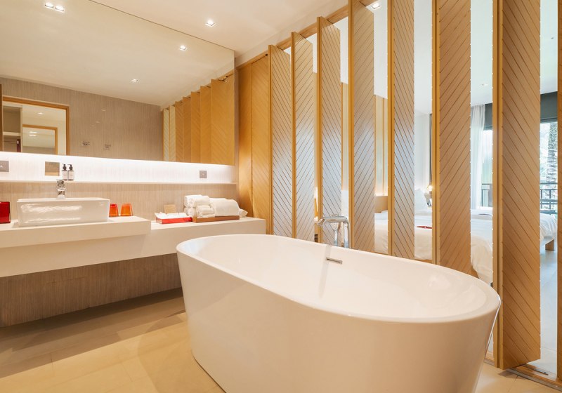 Ihr wohnt in klimatisierten Zimmern mit Balkon oder Terrasse. Zur Ausstattung zählen Bad mit Dusche/WC, Föhn, Bademantel, Sat-TV, Telefon, Safe, Minibar sowie Tee- und Kaffeekocher. In bestimmten Zimmern gehört ein Whirlpool dazu. Ausgewählte Kategorien bieten Blick auf Pool, Strand oder Meer, sodass Ihr Euren Tagesrhythmus am Wasser ausrichten könnt. Highlight: Whirlpool in ausgewählten Zimmern für private Auszeiten.