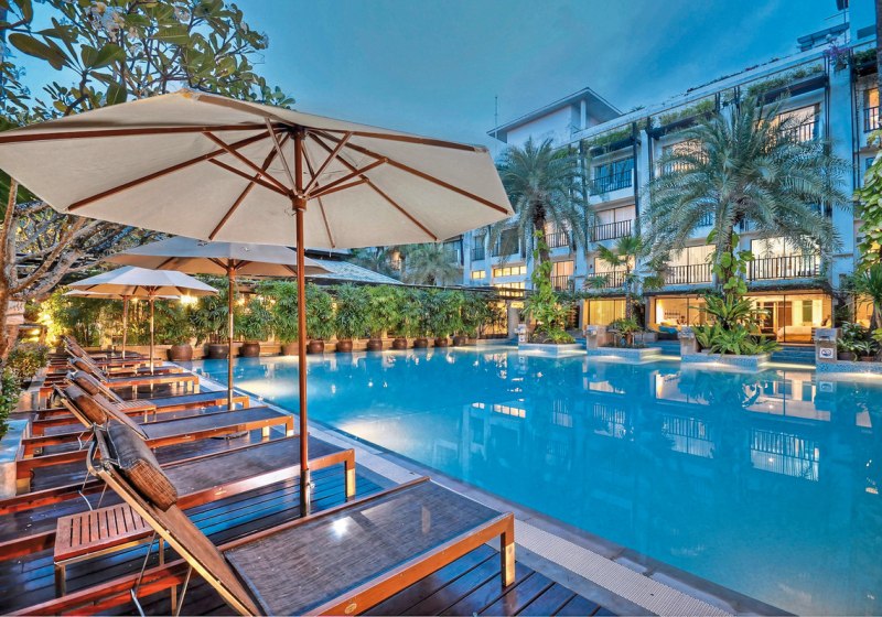 Im Burasari Phuket wohnt Ihr in einem stilvollen Rückzugsort mitten in Patong, der urbane Energie mit entspanntem Resortgefühl verbindet. Der offene Empfangsbereich führt Euch direkt in die grüne Gartenanlage mit zwei Pools und großzügigen Sonnenterrassen. Hier wechselt Ihr nahtlos zwischen Badezeit und kurzen Wegen an den öffentlichen Strand, der nur wenige Schritte entfernt liegt. Das Haus wirkt angenehm überschaubar, ohne auf Annehmlichkeiten zu verzichten, und richtet sich an Reisende, die Strandnähe, authentische Küche und komfortable Zimmer schätzen.