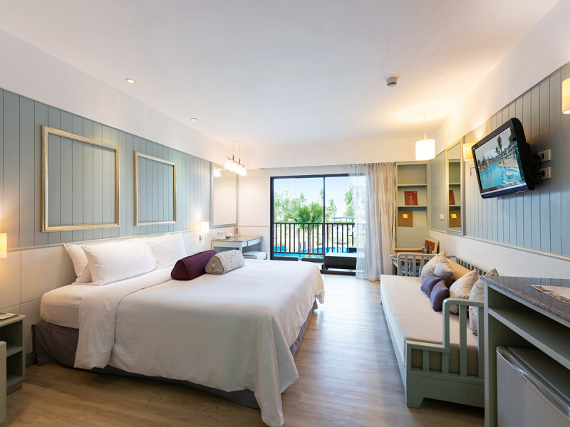 Juniorsuiten im Thani Wing sind zusätzlich mit DVD-Player ausgestattet; Grand-Deluxe-Varianten bieten teils direkten Poolzugang gegen Aufpreis. Bademäntel, Slipper, Föhn und Kosmetikartikel ergänzen den Komfort. Zustell- und Kinderbetten, Sofa-Betten und Schreibtisch sind je nach Kategorie verfügbar. Highlight: Auswahl zwischen Strandnähe im Thani und Ruhe im Bhuri.