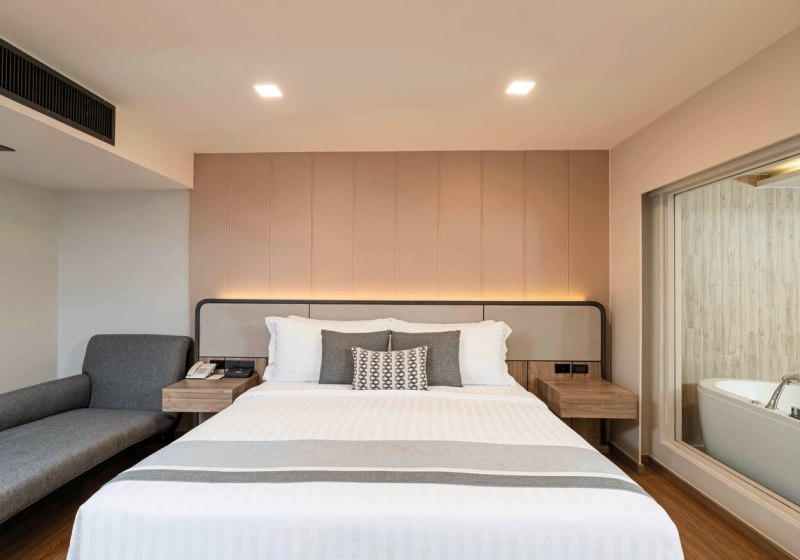 - Strandnah gelegen: Zwei Gehminuten zum Patong Beach erleichtern Euren Tagesrhythmus spürbar.