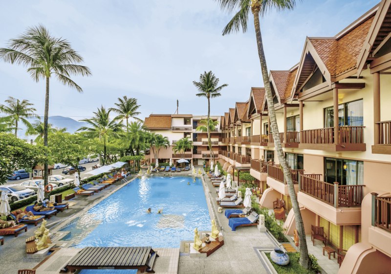 Im Seaview Patong Hotel wohnt Ihr am sfcdlichen Ende des Patong Beach genau dort, wo Strandflair und Stadtleben aufeinandertreffen. Die Anlage trennt nur die Uferstradfe mit Promenade vom langen, flach abfallenden Sand. Das Ambiente wirkt lebssig und aufgere4umt, mit klaren Wegen zwischen Lobby, Pools und Restaurant. Familien freuen sich fcber den Kinderpool, Miniclub und Zimmeroptionen mit separatem Schlafzimmer. Paare we4hlen Re4ume mit direktem Poolzugang ffcr ruhige Stunden zwischen Bad und Terrasse.