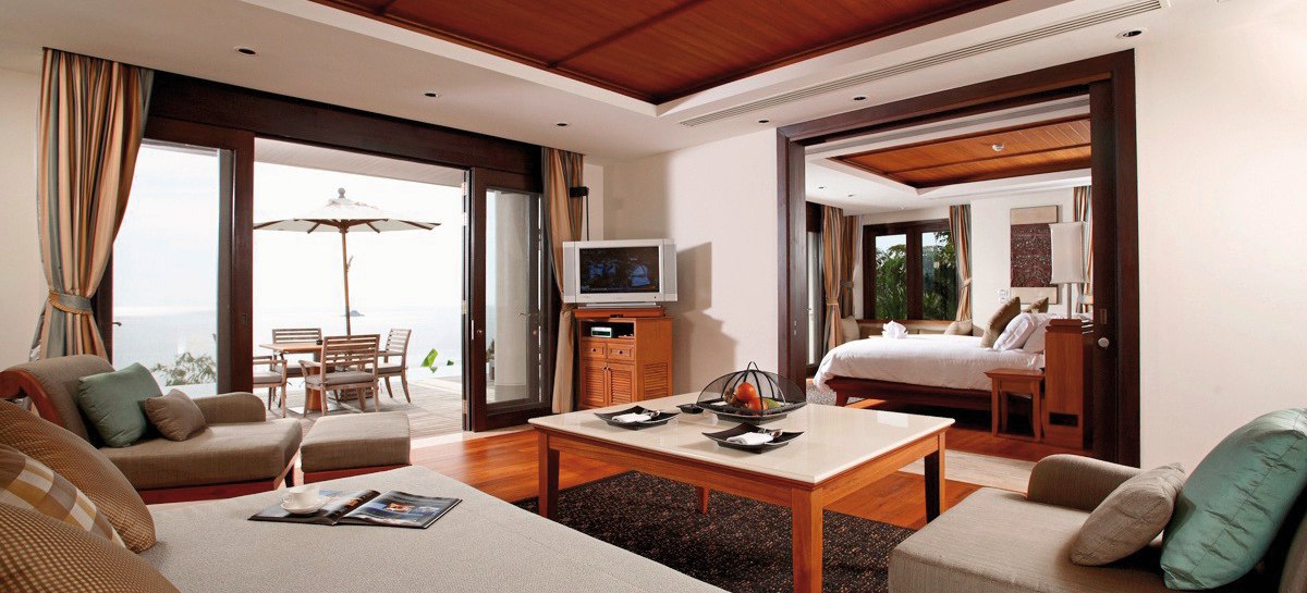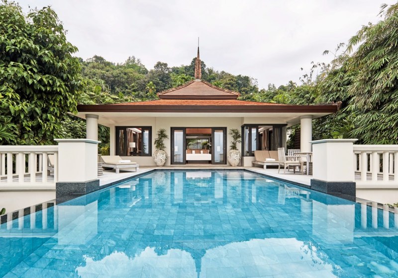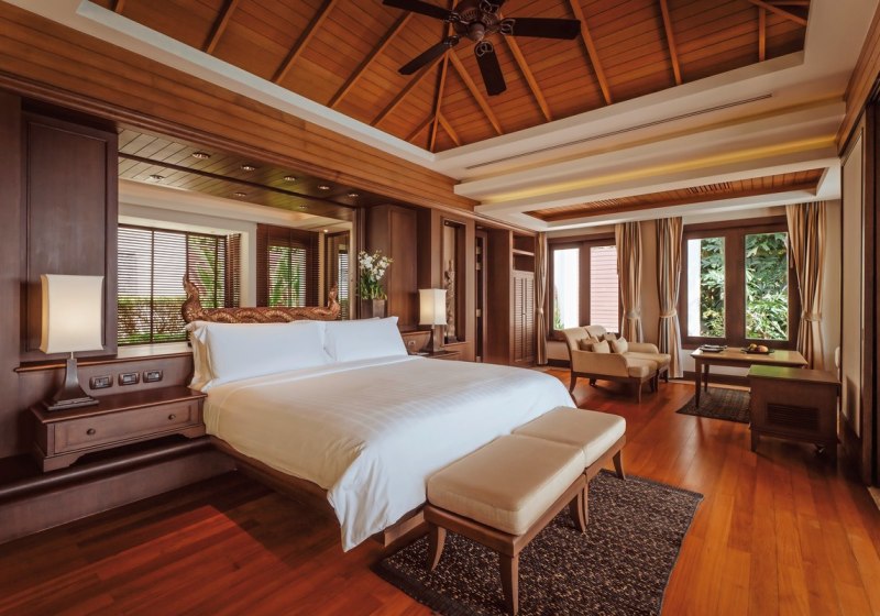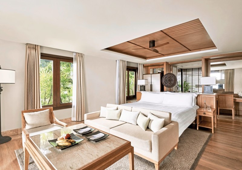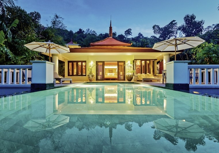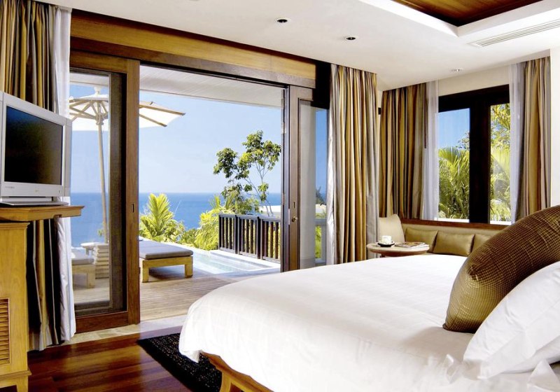 Trisara bringt Euch in der Naithorn Bay direkt an den Strand mit Korallenriff – ruhig gelegen im Nordwesten von Phuket. 39 Ocean View Pool Villen und Suiten schaffen Privatsphäre mit eigenem Pool und Meerblick. Ein 43-Meter-Salzwasserpool mit rund 1.000 Quadratmetern Holzdeck bildet das Herz der Anlage. WLAN ist kostenfrei, die Atmosphäre konzentriert sich auf Raum, Licht und klare Linien. Highlight: Villenruhe pur. Privatpools mit Meerblick prägen Euren Rückzugsort konsequent.