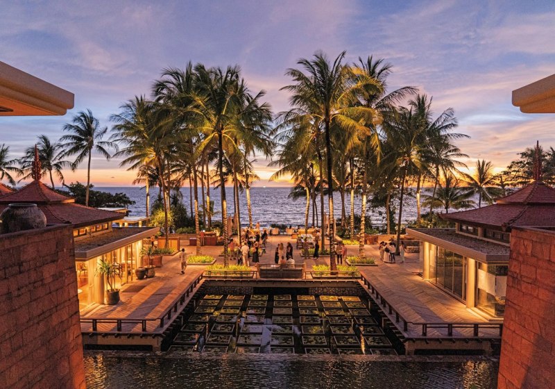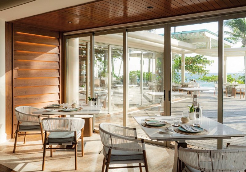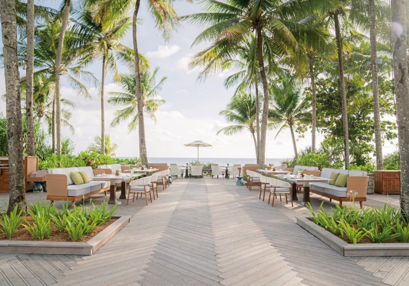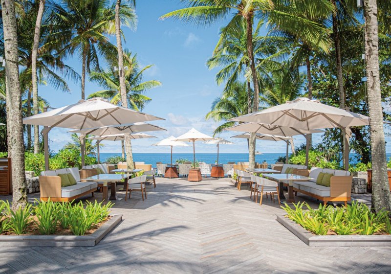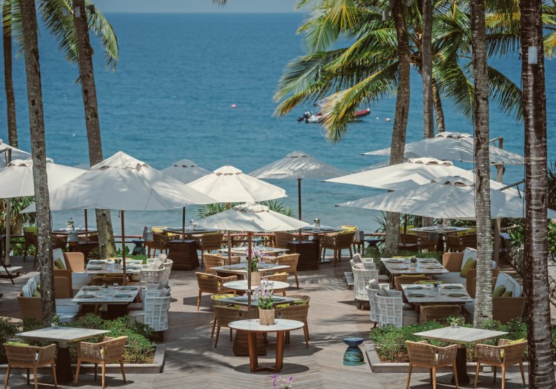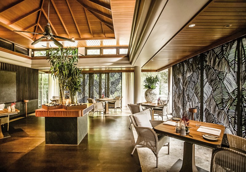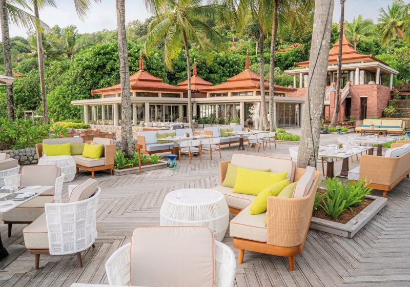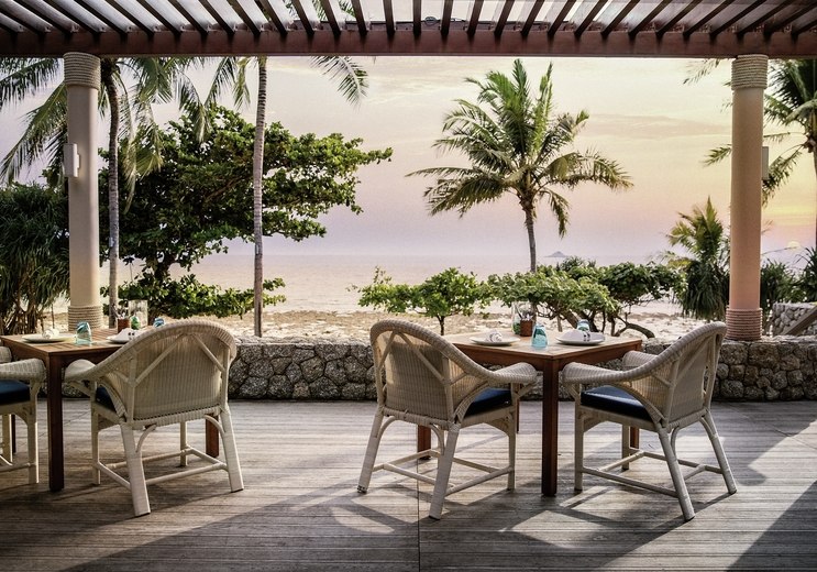 Ihr esst in mehreren klar profilierten Adressen: La Crique serviert französisch-mediterrane Küche, Thai Livrary fokussiert südthailändische Aromen, Cielo & Spice öffnet die internationale Karte. Direkt am Strand sitzt Ihr im Noé on the Beach, flankiert von der 7.8°N Bar. Highlight: Zwei Sterne. PRU und JAMPA sind Michelin-prämiert.