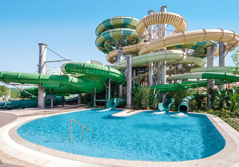 - Wasseraction: Madventure Park mit Rutschen ergänzt Strand- und Poolzeiten.