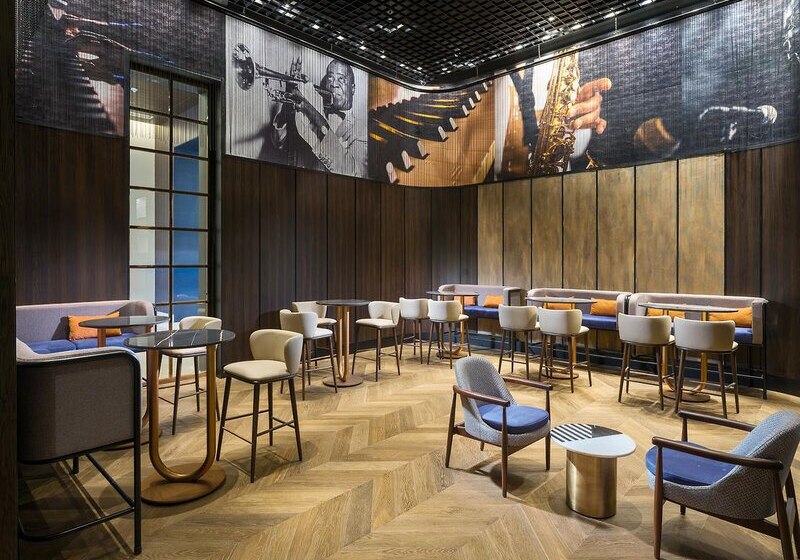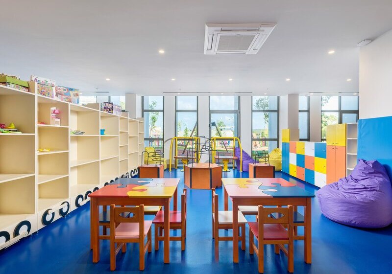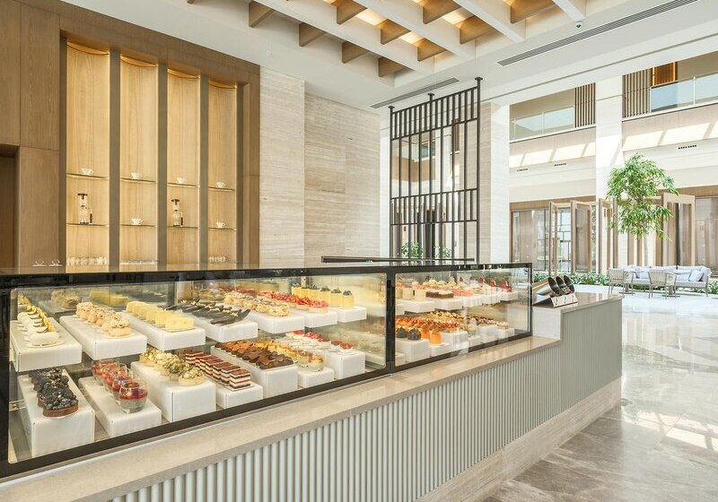 Die Infrastruktur ist umfangreich und modern: Lobbybar, Café, Restaurants, Shops und mehrere Bars binden sich in großzügige Innen- und Außenbereiche ein. Mit sieben Pools, zwei Kinderpools und einem Hallenbad bleibt Ihr wetterunabhängig. Liegestühle und Sonnenschirme liegen bereit, Terrassen und Gärten schaffen angenehme Freiflächen.