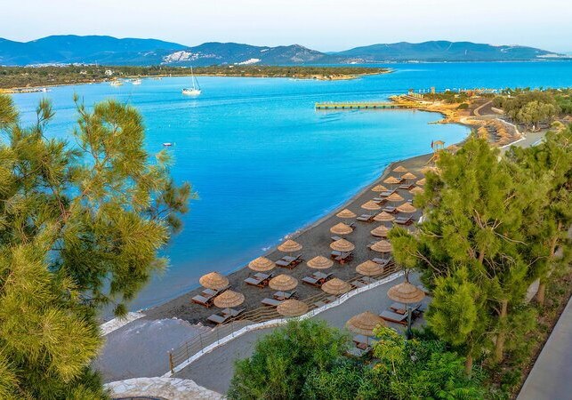 Auf der Delice Peninsula bei Didim wohnt Ihr im Anda Barut Collection direkt am Strand. Die Lage wirkt ruhig und zugleich gut angebunden: Bis ins Zentrum von Didim sind es rund 8 km, der Flughafen Bodrum liegt etwa 78 km entfernt. So kombiniert Ihr unaufgeregte Strandtage mit Ausflügen in die Umgebung, ohne auf eine klare Erreichbarkeit zu verzichten.