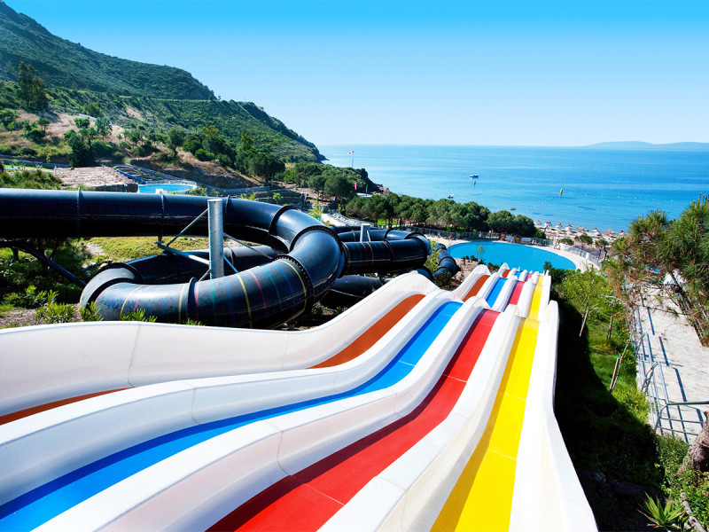 Aria Claros Beach & Spa Resort verbindet direkte Strandlage in Özdere mit weitläufigen Wasserflächen, zwei Aquaparks und einem lebendigen Sommerprogramm. All-Inclusive Plus, mehrere Bars und Terrassenplätze sorgen für klare Abläufe und kurze Wege vom Strand zum Abend. Die Lage nahe Ephesus und Kusadasi erweitert Eure Pläne.