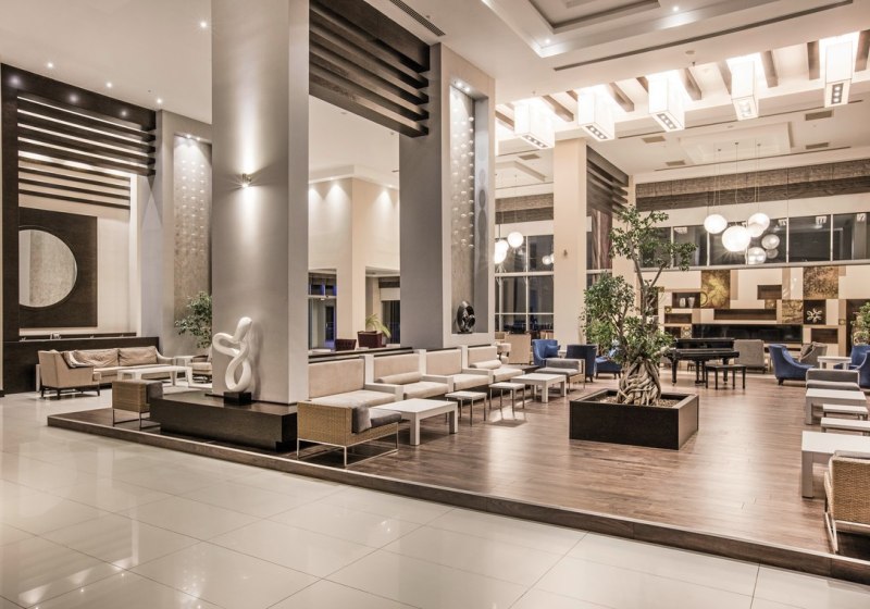 Das Resort vereint Haupthaus und 52 Nebengebäude mit 493 Zimmern, erbaut 2009 und 2016 renoviert. Die Lobby mit Sitzbereichen, Lifts und 24-Stunden-Rezeption wirkt funktional und großzügig. WLAN ist in Hauptbereichen und Zimmern verfügbar. Shops, Friseur, Souvenirshop und Supermarkt ergänzen die Infrastruktur. Highlight: Große Anlage mit klarer Wegeführung und vielfältigen Servicepunkten.