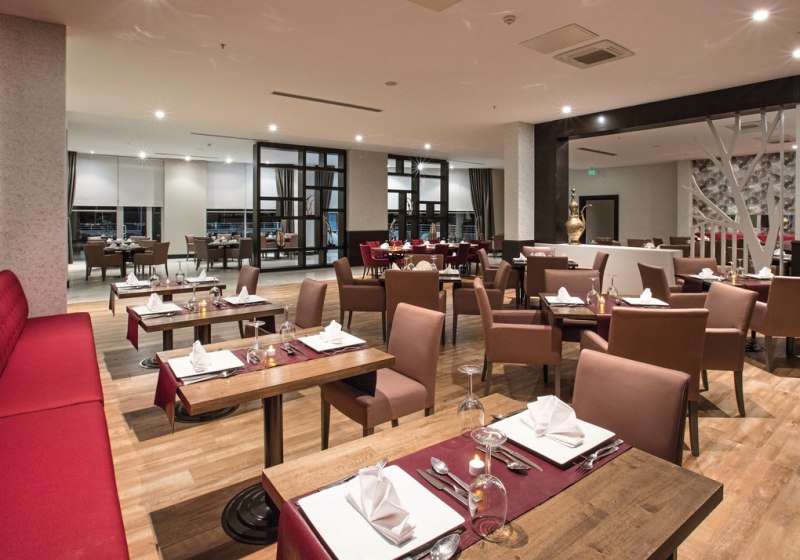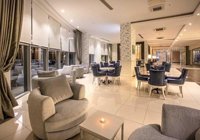 Familien findet Ihr im Miniclub und im Mini Paradise Aquapark, während Ihr an der Beachbar den Blick auf das Meer genießt. Abends sorgt die Diskothek für Beats, Live-Musik für ein weiches Ausklingen. Kulinarisch begleitet Euch All-Inclusive Plus vom Frühstück bis zu Snacks und Getränken. Konferenzräume, Shops und ein Friseur erweitern die Möglichkeiten deutlich. Highlight: All-Inclusive-Plus mit Buffet, À-la-carte und mehreren Bars für flexible Genussmomente.