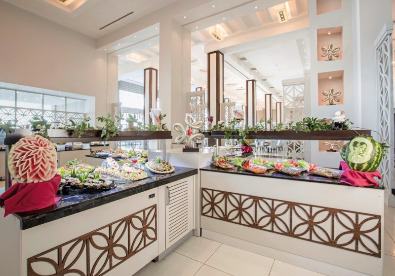 Euer All-Inclusive-Plus umfasst Frühstück, Mittag- und Abendessen, Snacks sowie alkoholische und alkoholfreie Getränke inklusive Hausmarken. Das Buffetrestaurant mit Terrasse bildet die kulinarische Basis, À-la-carte-Restaurants setzen Akzente. Diätgerichte und Zimmerservice erweitern den Rahmen. Highlight: All-Inclusive-Plus mit Buffet, À-la-carte und flexiblen Snackzeiten.