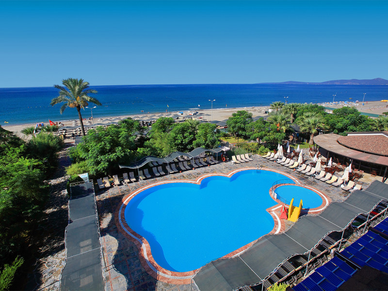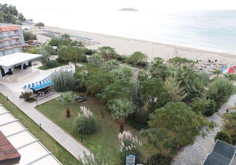 Cactus Paradise kombiniert direkte Strandlage nahe Gümüldür mit klaren Strukturen: All-Inclusive im Hauptrestaurant, zwei Bars, großer Garten mit Pool und inklusive Strand-Setup. Familien freuen sich über Miniclub und Kinderbecken, Aktivurlauber über vielseitige Sportangebote an Land und im Wasser.