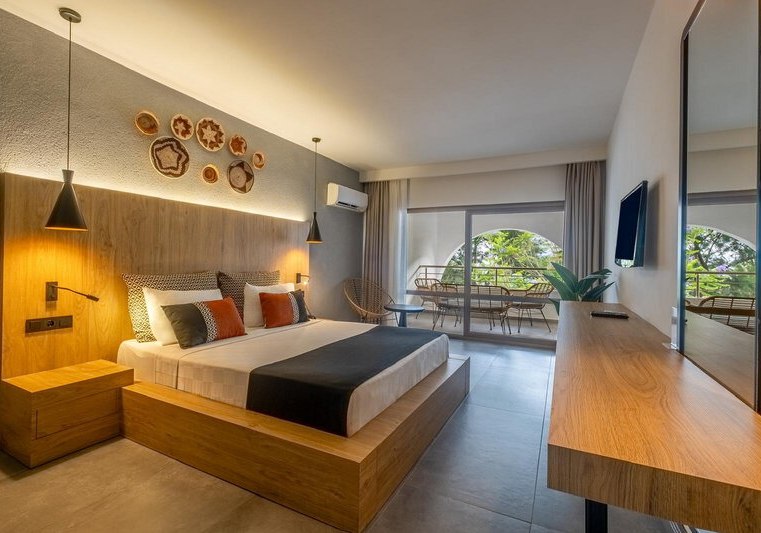 • Klimaanlage • Balkon (je nach Zimmerkategorie) • Haartrockner • Minibar (kostenfrei) • Safe (kostenfrei) • Meerblick (je nach Zimmerkategorie) • Schlafsofa • Kaffee-/Teezubereiter • Terrasse • Fernseher • WiFi (kostenfrei) • Balkon oder Terrasse • Gartenblick