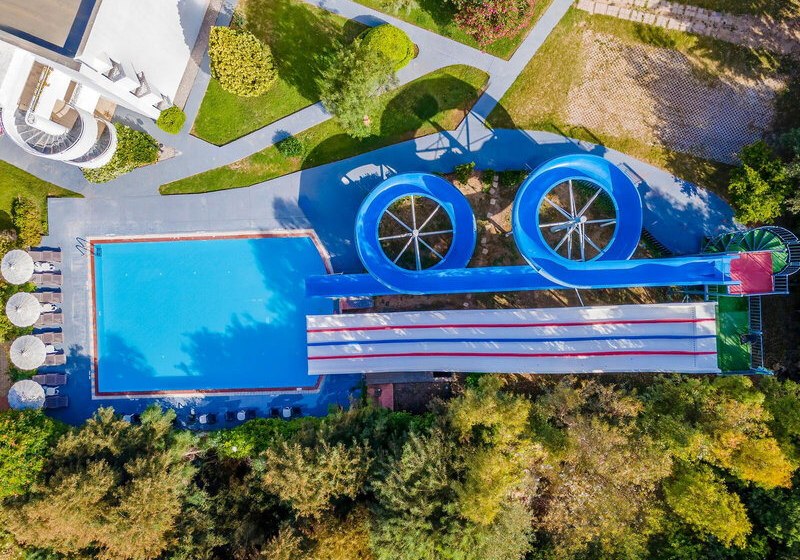 • Liegestühle • Außenpool • Sonnenschirme • Poolbar • Sonnenterrasse • Badetücher • Wasserrutsche • Wasserpark • Pool