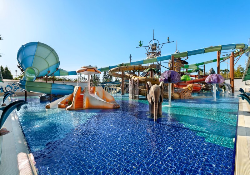 - Viel Platz: 48.000 m² Gelände mit Hallenbad, Aquapark und Terrassen.