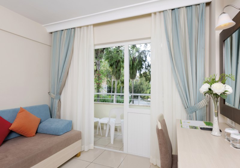 • Klimaanlage • Balkon (je nach Zimmerkategorie) • Haartrockner • Minibar • Safe • Kaffee-/Teezubereiter • Hosenpresse • Fernseher • WiFi (kostenfrei) • Gartenblick • Bergblick • Schallisolation • Terrasse