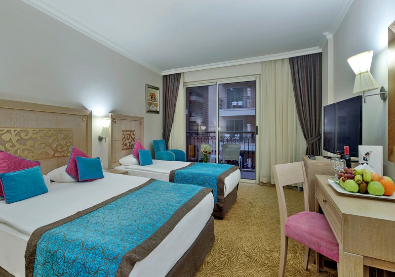 Ihr wohnt mit funktionalen Details: Dusche, Föhn, Sat‑TV mit Musiksender, Safe und Mini‑Kühlschrank. Zentral gesteuerte Klimaanlage (zeitweise), Teppichboden, Balkon und inklusive WLAN runden den Komfort ab. Seitlicher Meerblick ist in ausgewählten Einheiten verfügbar. Highlight: Balkon in allen Zimmern für kurze Auszeiten.