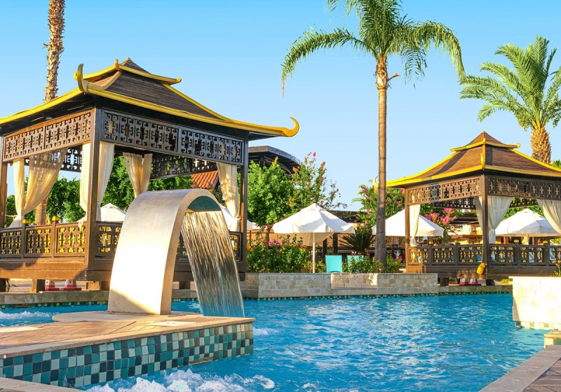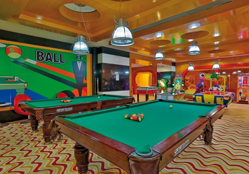 Drei Außenpools, Aquapark und Whirlpools (außen und im Hallenbad) prägen das Wassererlebnis. Liegen, Auflagen, Sonnenschirme und Strandtücher liegen an Pool und Strand bereit. Für Meetings gibt es zwei Konferenzräume. Abends führt Euch die Beleuchtung sicher zu Bars, Disco oder Kino. Highlight: Weitläufige Wasserflächen mit praktischer Ausstattung.