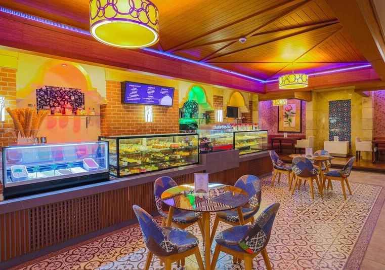 Vom Hauptrestaurant mit Terrasse bis zu À‑la‑carte‑Adressen: Ihr esst vielfältig und in ruhigen Abläufen. Die Bars verteilen sich klug über die Anlage, eine davon ist rund um die Uhr geöffnet. Dazu kommt das Café Turca mit charakteristischen Heißgetränken. Highlight: 24‑Stunden‑Bar für flexible Genussmomente.