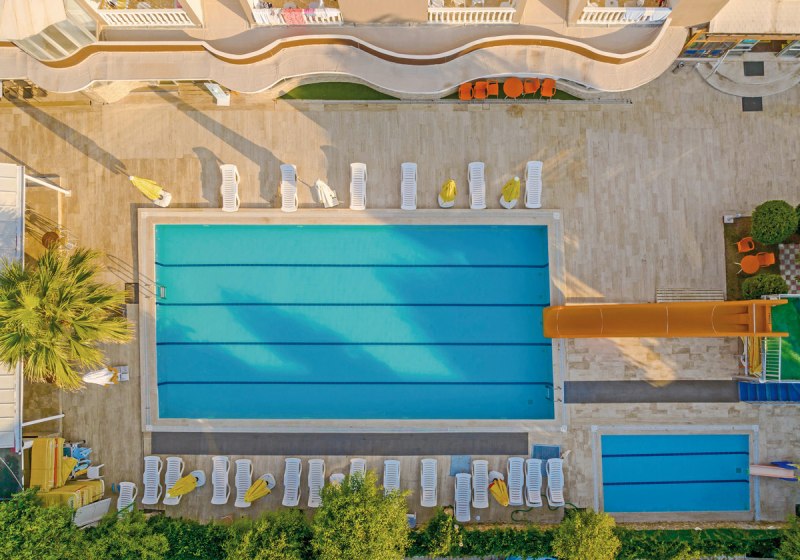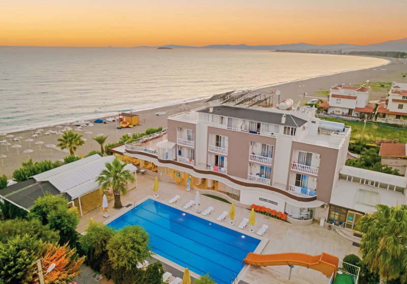 Dogan Beach Resort & Spa steht für direkte Strandlage, kompakte Wege und klare Angebote. Pool mit Wasserrutsche, Kinderbecken, Softanimation und All-Inclusive schaffen einen strukturierten Tagesablauf zwischen Meer, Terrasse und Poolbar. Wellness mit Hamam und Sauna setzt ruhige Akzente, Sport erweitert das Programm nach Wunsch.