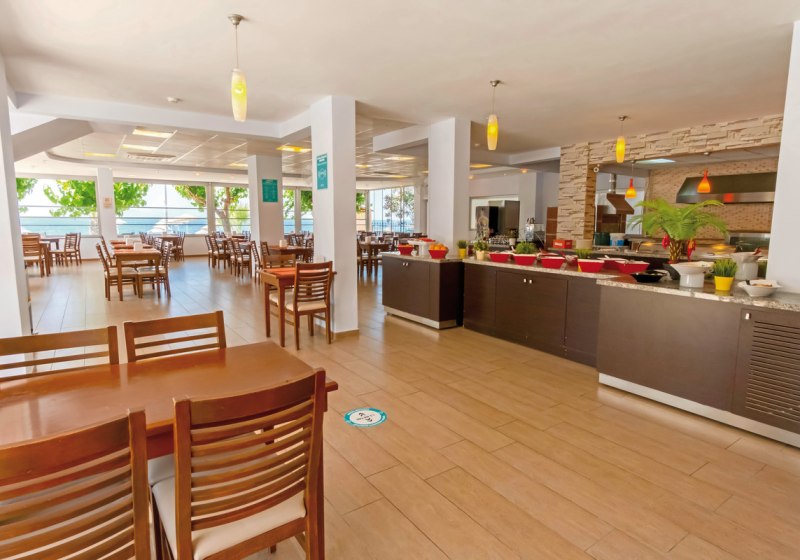 Im Buffetrestaurant mit Terrasse esst Ihr flexibel und ohne lange Wege. All-Inclusive umfasst Frühstück, Mittag- und Abendessen, ergänzt durch Snacks sowie alkoholische und alkoholfreie Getränke. So bleibt Ihr unabhängig von Uhrzeiten und gestaltet Euren Tag zwischen Strand, Pool und Terrasse nach Appetit.