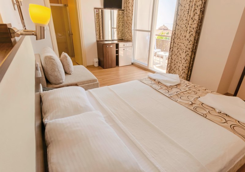 • Klimaanlage • Balkon (je nach Zimmerkategorie) • Kühlschrank • Haartrockner • Minibar • Safe • Meerblick (je nach Zimmerkategorie) • Terrasse • Fernseher • WiFi
