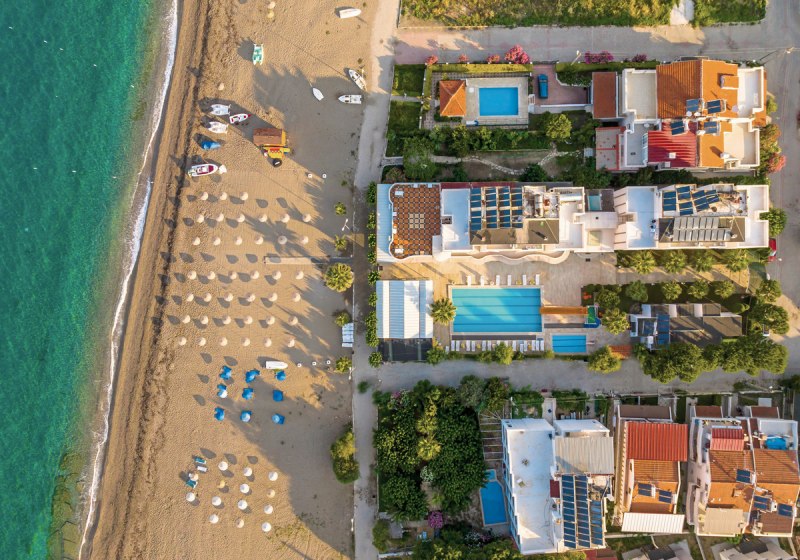 - Direkt am Strand: Schneller Wechsel zwischen Liege, Pool und Meer.