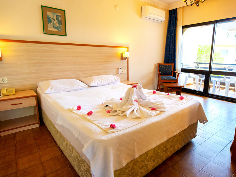 Im Dogan Paradise Family Club wohnt Ihr in einem überschaubaren Ferienclub, der sich mit fünf niedrigen Gebäuden rund um Pool und Garten gliedert. Der Alltag wirkt sofort fern: Kies- und Sandstrand liegen direkt vor Euch, die Wege sind kurz, die Abläufe klar. Familien schätzen das integrierte Kinderbecken und die Rutsche, Paare die ruhige, ungezwungene Atmosphäre. All Inclusive sorgt für entspannte Tage ohne Planungsaufwand, die Poolbar und die Terrasse des Buffetrestaurants rahmen Eure Zeit am Wasser. WLAN steht in den öffentlichen Bereichen bereit, sodass Ihr unkompliziert vernetzt bleibt.
