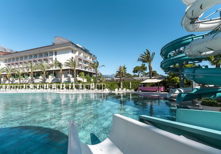 Im DoubleTree by Hilton Antalya Kemer trefft Ihr auf ein lebendiges Resort mit direkter Strandlage, großem Außenpool und Badesteg. Die Atmosphäre wirkt energiegeladen: Tagsüber locken Wasserrutschen und Gartenbereiche, abends Shows und Livemusik. Familien, Strandliebhaber, junge Leute und Paare fühlen sich hier gleichermaßen wohl. Auch Tagungen und Events erhalten einen passenden Rahmen.