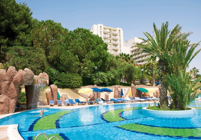 Das Haus erstreckt sich über acht Etagen und ist mit vier Aufzügen erschlossen. In der Lobby mit Rezeption nutzt Ihr WLAN, dazu stehen Lounge, Sat-TV-Raum und Konferenzbereiche bereit. Ein Beautycenter, Friseur, Geschäfte und Minimarkt ergänzen die Infrastruktur. Draußen strukturiert eine großzügige Sonnenterrasse die beiden Süßwasserpools, dazu ein separates Kinderbecken.