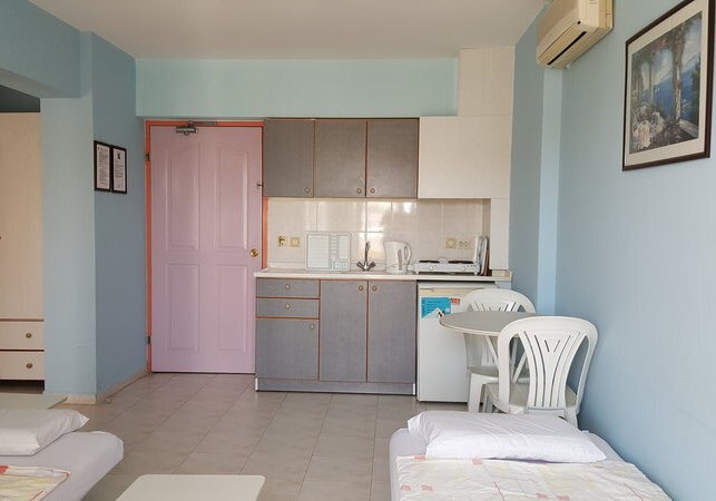 Eure Apartments sind funktional ausgestattet: Doppel- oder Twinbetten, gefliester Boden und eine Kitchenette mit Wasserkocher bringen Alltag und Komfort zusammen. Ein Balkon erweitert den Raum ins Freie, Sat-TV ist an Bord. Die individuell regulierbare Klimaanlage nutzt Ihr gegen Gebühr. Highlight: Praktische Apartments mit Kitchenette und Balkon für freie Tagesplanung.