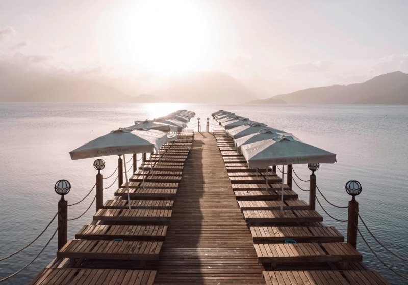 In Marmaris gelegen und direkt am Strand, profitiert Ihr im Casa De Maris Spa & Resort Hotel von kurzen Wegen und einer angenehm maritimen Stimmung. Der hoteleigene Sandabschnitt liegt nur durch die Uferpromenade getrennt vor Euch; Liegen, Sonnenschirme und Badetücher sind am Strand wie am Pool vorgesehen. Bis ins Ortszentrum von Marmaris sind es etwa 5 Kilometer – ideal für Ausflüge zwischen Hafenflair, Basar und Restaurants. Der Flughafen Dalaman liegt rund 90 Kilometer entfernt, wodurch die Anreise planbar bleibt. Auf der Anlage selbst gleicht der Tagesrhythmus einer fein dosierten Mischung aus Meer, Pool und Spaziergängen entlang der Promenade. So erlebt Ihr die Küstenlinie dynamisch, ohne die Ruhe der Anlage aufzugeben. Highlight: Direkter Strandbezug mit Promenade als lebendiger Verbindungslinie nach Marmaris.