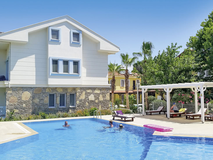 Familien profitieren von einem separaten Kinderpool sowie Familienzimmern mit abgetrenntem Schlafzimmer. Wer es frischer mag, wählt Deluxe-Zimmer im Neubau, der durch eine Nebenstraße vom Haupthaus getrennt liegt. Kulinarisch erwartet Euch ein Buffetrestaurant mit Terrasse, ergänzt durch Bar und Pool-Snackbar; Verpflegungsoptionen reichen von Frühstück bis Halbpension über Mittag- und Abendessen. In wenigen Gehminuten erreicht Ihr das Zentrum von Dalyan mit Cafés, Bars, Restaurants und Diskotheken – lebendige Abende liegen somit ebenso nah wie ruhige Poolstunden am Tag.