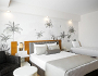 Das Hotel bietet insgesamt 288 Zimmer und Wohneinheiten auf 5 Etagen. Alle Zimmer sind modern ausgestattet und verfügen über Annehmlichkeiten wie Dusche/WC, Sat.-TV, Telefon, Kaffeemaschine, Minibar und Klimaanlage. Außerdem stehen Familienzimmer mit Verbindungstür zur Verfügung. Alle Zimmer haben einen eigenen Balkon und bieten entweder eine Pool- oder eine Landschaftsseite.