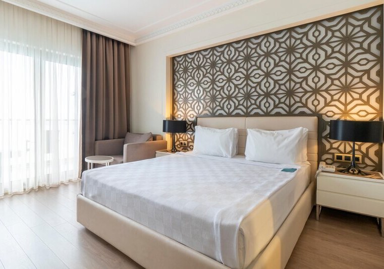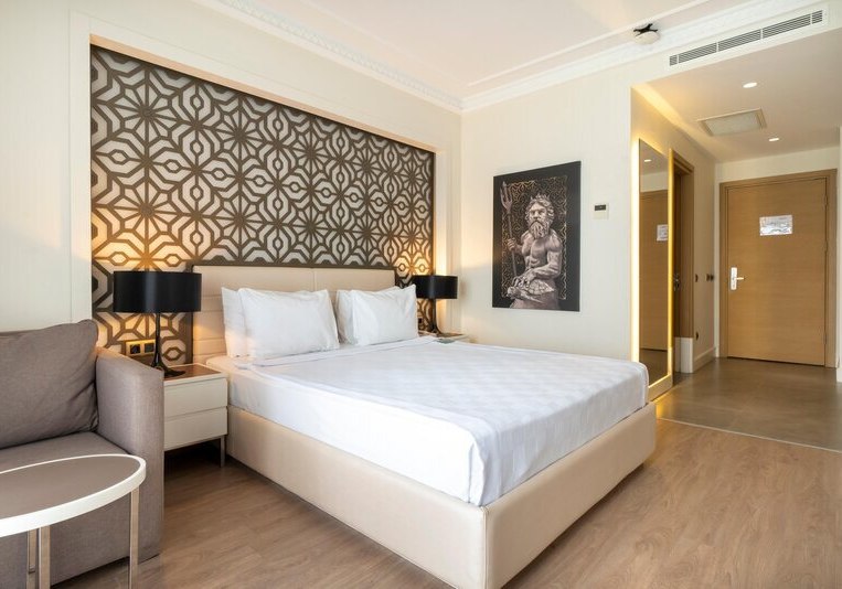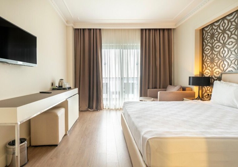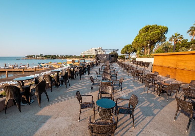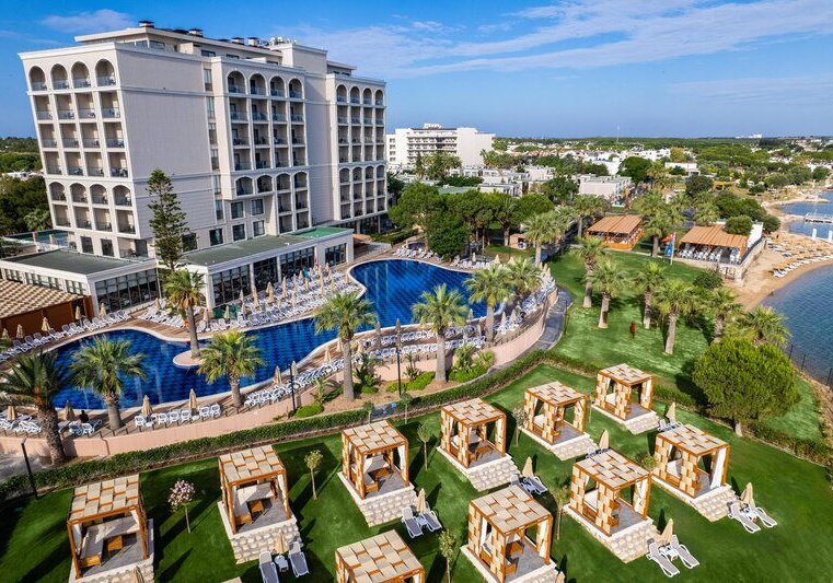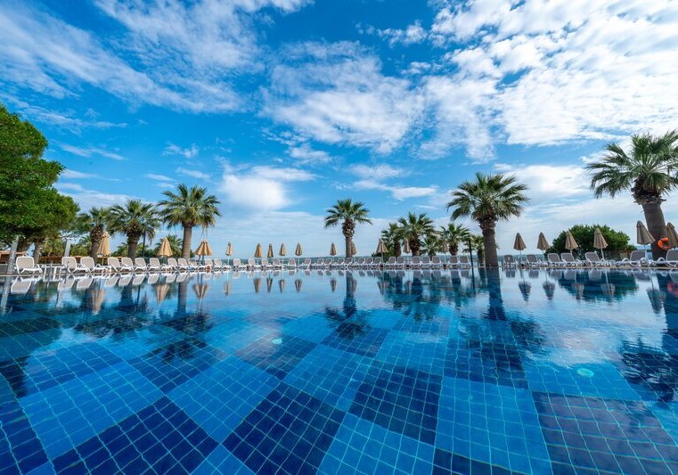 Ihr bewegt Euch mühelos zwischen Hauptpool, Strand und den gastronomischen Stationen – vom Buffetrestaurant mit Terrasse bis zu drei À-la-carte-Restaurants mit türkischer, italienischer und Fischküche. Für Familien stehen Miniclub, Minidisco, überdachter Spielplatz und Kinderpool bereit. Sportbegeisterte nutzen Fitness, Aerobic, Tennis sowie Tischtennis, während der Aquapark mit Wasserrutschen definierte Zeiten bietet. Highlight: Hoteleigener Strand und Aquapark setzen den Rahmen für aktive Strandtage.
