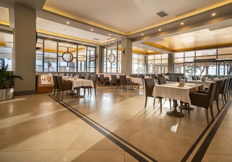 Eure kulinarische Basis ist das Buffetrestaurant mit Terrasse, ergänzt durch drei À-la-carte-Restaurants mit türkischer, italienischer und Fischküche. Mehrere Bars verteilen sich über die Anlage und begleiten vom Kaffee bis zum späten Drink. Ein Kinderbuffet im Hauptrestaurant hält passende Optionen für Familien bereit.
