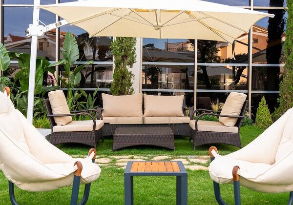 - Eigener Strand: Liegen und Schirme am hauseigenen Sand-/Kiesstrand inklusive.