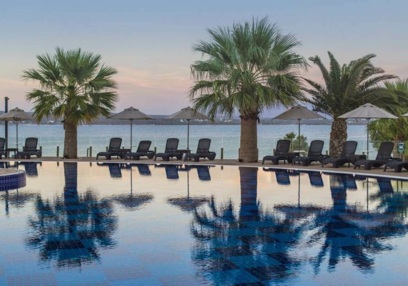 Der Aquapark für Erwachsene mit Wasserrutschen, ein Hallenbad und eine Poolbar ergänzen die Freiflächen. Konferenzraum, Pagen-Service, Wäscherei, Mietwagenverleih und Souvenir-Shop runden das praktische Angebot ab. Zwei Hauptgebäude sowie niedrige Bungalows geben der Anlage klare Wege. Haustiere sind nicht vorgesehen. Highlight: Weitläufige Wasserflächen mit Haupt- und Relaxpools.