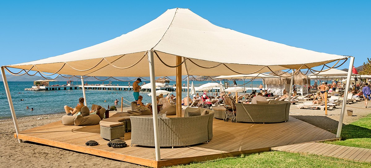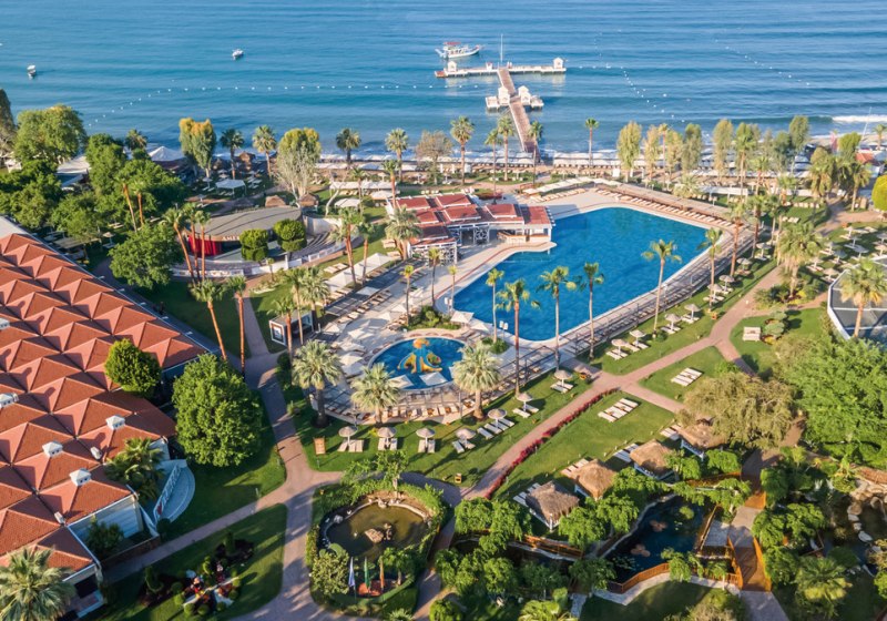 Im weitläufigen Feriendorf-Flair von Club Tuana Fethiye lebt Ihr das Clubgefühl direkt am Sand-/Kiesstrand bei Fethiye. Wege führen durch Gärten zu Pools, Restaurants und offenen Treffpunkten. Tags über lockt das Wasser, abends nimmt Euch das Amphitheater mit. Familien, Strandliebhaber und Clubfans finden hier dichten Programmfluss, ohne dass die Anlage an Übersicht verliert.
