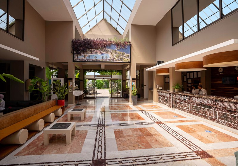 Die öffentlichen Bereiche sind breit aufgestellt: Empfangshalle mit Rezeption, Lounge- und TV-Zonen, gratis WLAN in vielen Bereichen sowie zusätzliche Internetecke. Shops, Friseur, Supermarkt und Souvenirangebote decken den täglichen Bedarf. Konferenzsaal und Business-Center ergänzen das Setting um funktionale Räume.