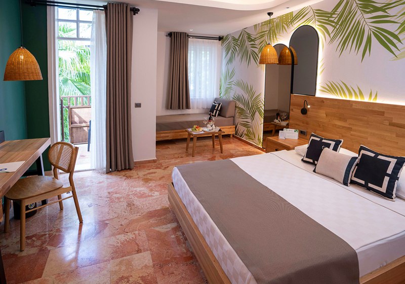 Familien finden großzügige Lösungen mit zwei Schlafzimmern und Verbindungstür. Je nach Lage blickt Ihr in Gärten oder auf die Poolbereiche. Für die Kleinsten stehen auf Anfrage Babybetten bereit. Der frisch renovierte Hotelrahmen bildet die passende Bühne für ruhige Abende auf dem Balkon – oder den schnellen Wechsel hinüber zu Bars und Bühne.
