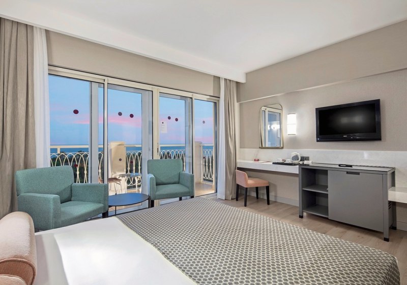 Am hoteleigenen Strandabschnitt liegen Schirme, Liegen, Auflagen und Badetücher bereit; Cabanas sind buchbar. Konferenzraum, Theatersaal und Nachtclub erweitern die Infrastruktur. Eine Ladestation für E-Autos sowie etablierte Managementsysteme (u. a. ISO 9001, 14001, 22000, 50001) unterstreichen einen strukturierten und zertifizierten Betriebsrahmen.