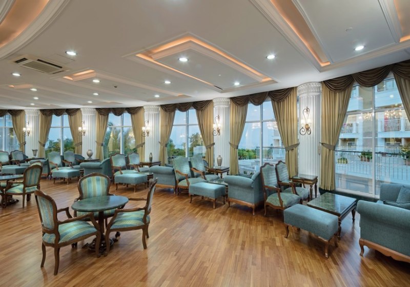 Die Resortanlage aus sechs Gebäuden umfasst etwa 40.000 Quadratmeter. Eine 24-Stunden-Rezeption, WLAN in der gesamten Anlage, Aufzüge, Gepäckraum sowie Shops, Friseur und ärztlicher Service bilden die funktionale Basis. Gartenflächen, Sonnenterrassen und eine Süßwasser-Poollandschaft setzen luftige Akzente neben dem beheizbaren Hallenbad.