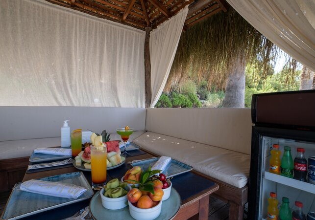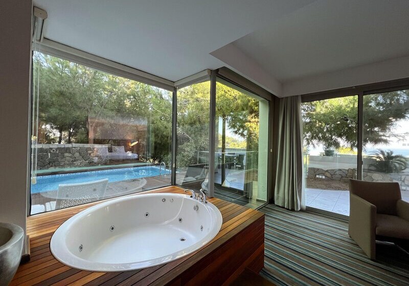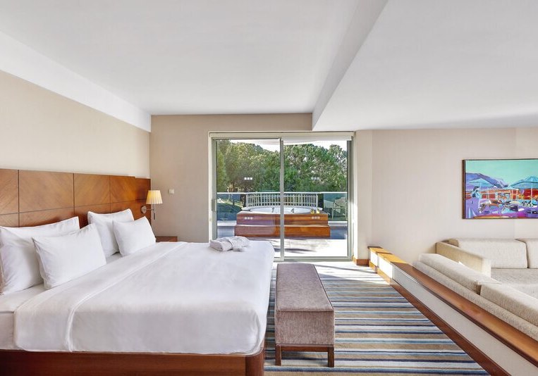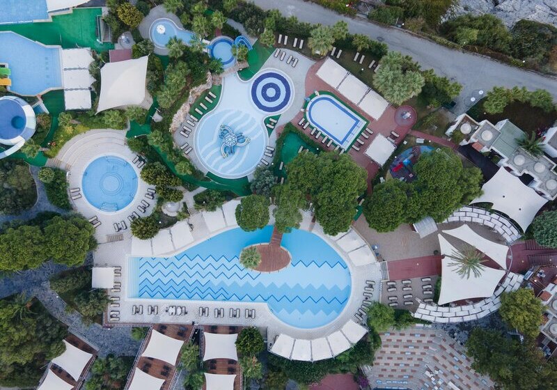 Am Pool und Strand nutzt Ihr Liegen, Schirme und Badetuchservice. Wasserrutschen und ein eigener Wasserpark bringen Tempo ins Programm. Gazebos, verschiedene Bars und die Beachbar direkt am Wasser erleichtern den Tagfluss. Eine Ladestation für Elektrofahrzeuge ergänzt die praktische Seite des Resorts.