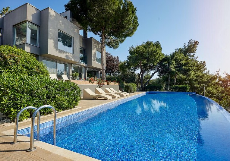 - Poolmix: Hauptpool, weitere Außenpools und Kinderbecken mit Rutschen.
