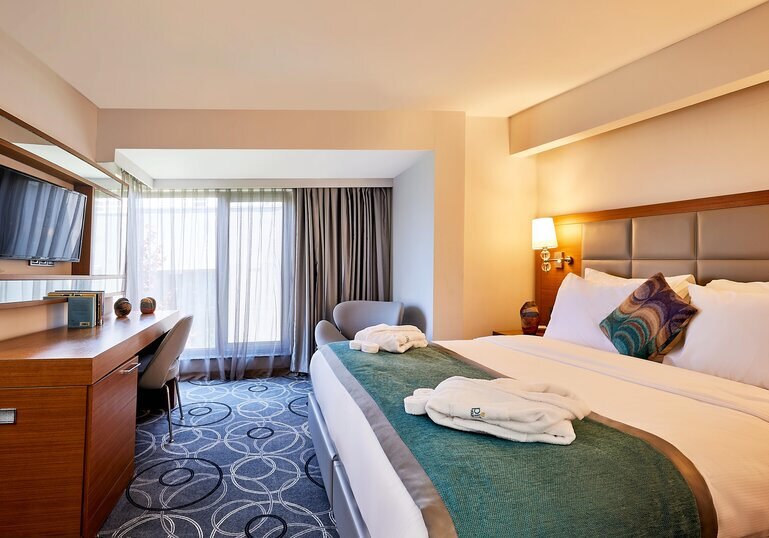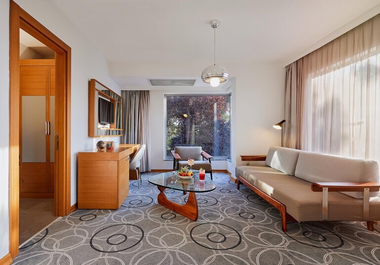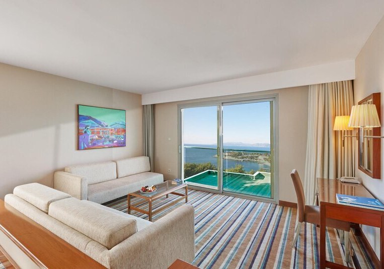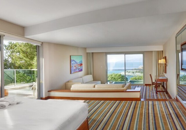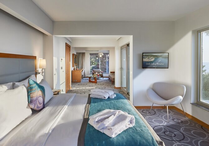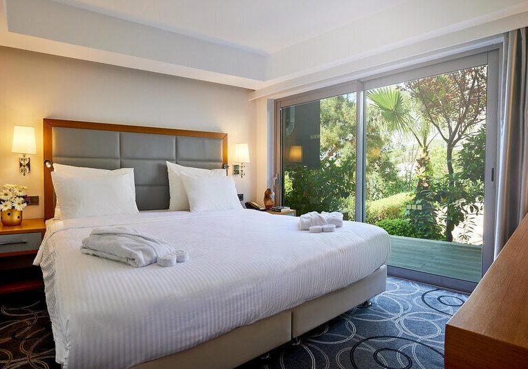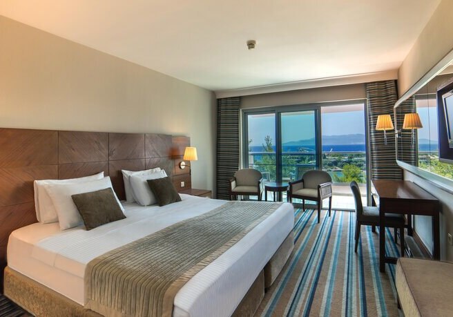 Zimmer• Klimaanlage • Haartrockner • Minibar • Safe • Kaffee-/Teezubereiter • Fernseher (Sat-TV) • rollstuhlgerechte Zimmer (auf Anfrage) • Balkon oder Terrasse • Buchtblick • Gartenblick • Poolblick • Uferpromenadenblick • Strandblick • Waldblick • Wasserkocher • Steckdose • Balkon (je nach Zimmerkategorie) • Terrasse • WiFi